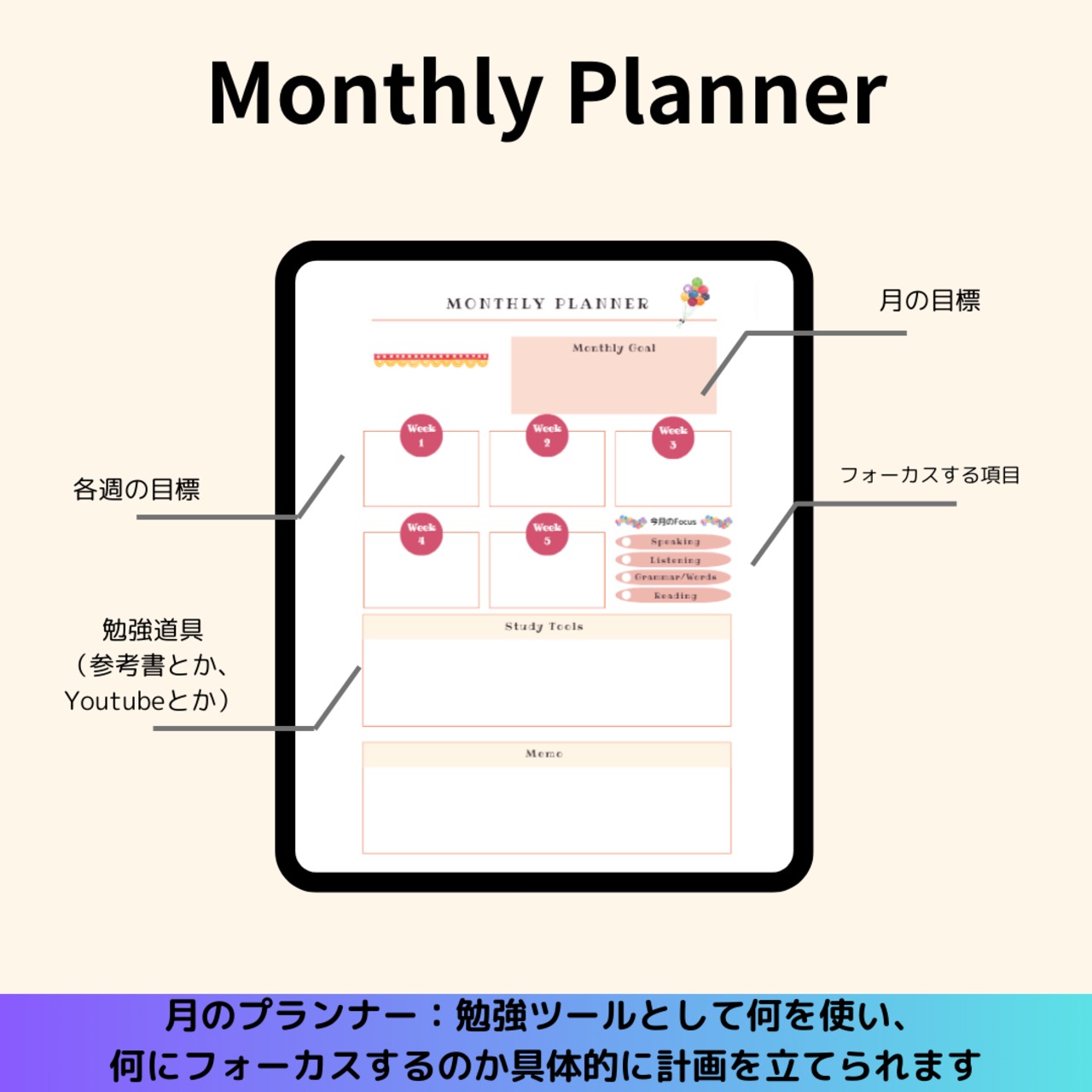 ★現役語学講師による、効果テキメン語学学習デジタルプランナー★